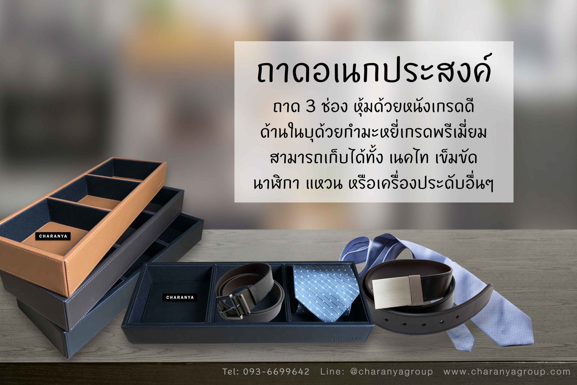เมื่อเลือกเข็มขัดได้แล้ว อย่าลืมหาถาดสำหรับเก็บเข็มขัดดี ๆ ซักใบ ถาดเก็บเข็มขัดหุ้มด้วยหนังเกรดดี นอกจากจะช่วยให้ของขวัญชิ้นนี้ดูมีมูลค่ามากขึ้นแล้ว ยังสามารถนำไปใช้ประโยชน์ต่อได้อีกด้วยน๊า