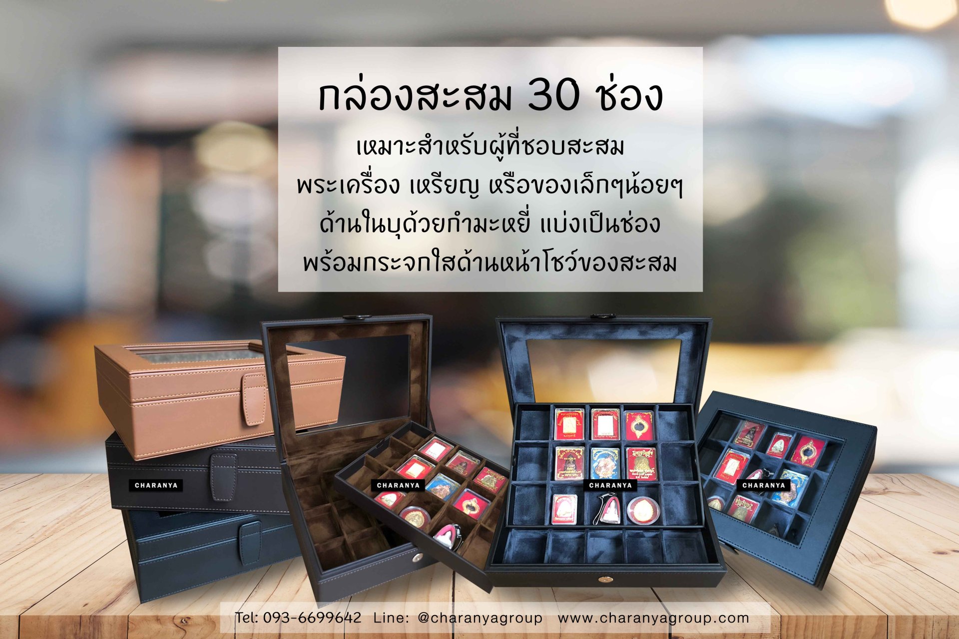 ซึ่งถ้าหาก ผู้ชาย ที่คุณต้องการซื้อกล่องสะสมให้ มีความชอบสะสมพระเครื่อง อาจจะเหมาะกับกล่องใส่พระเครื่องหุ้มหนัง 30 ช่อง CHRP15x2 ซึ่งเป็นกล่องเก็บสะสม ด้านนอกหุ้มด้วยหนังเกรดดี ด้านในแบ่งช่องอย่างพอดีและบุด้วยกำมะหยี่ ทำให้สามารถวางพระเครื่องได้อย่างเป็นระเบียบ และยังสามารถตั้งโชว์ได้อีกด้วย