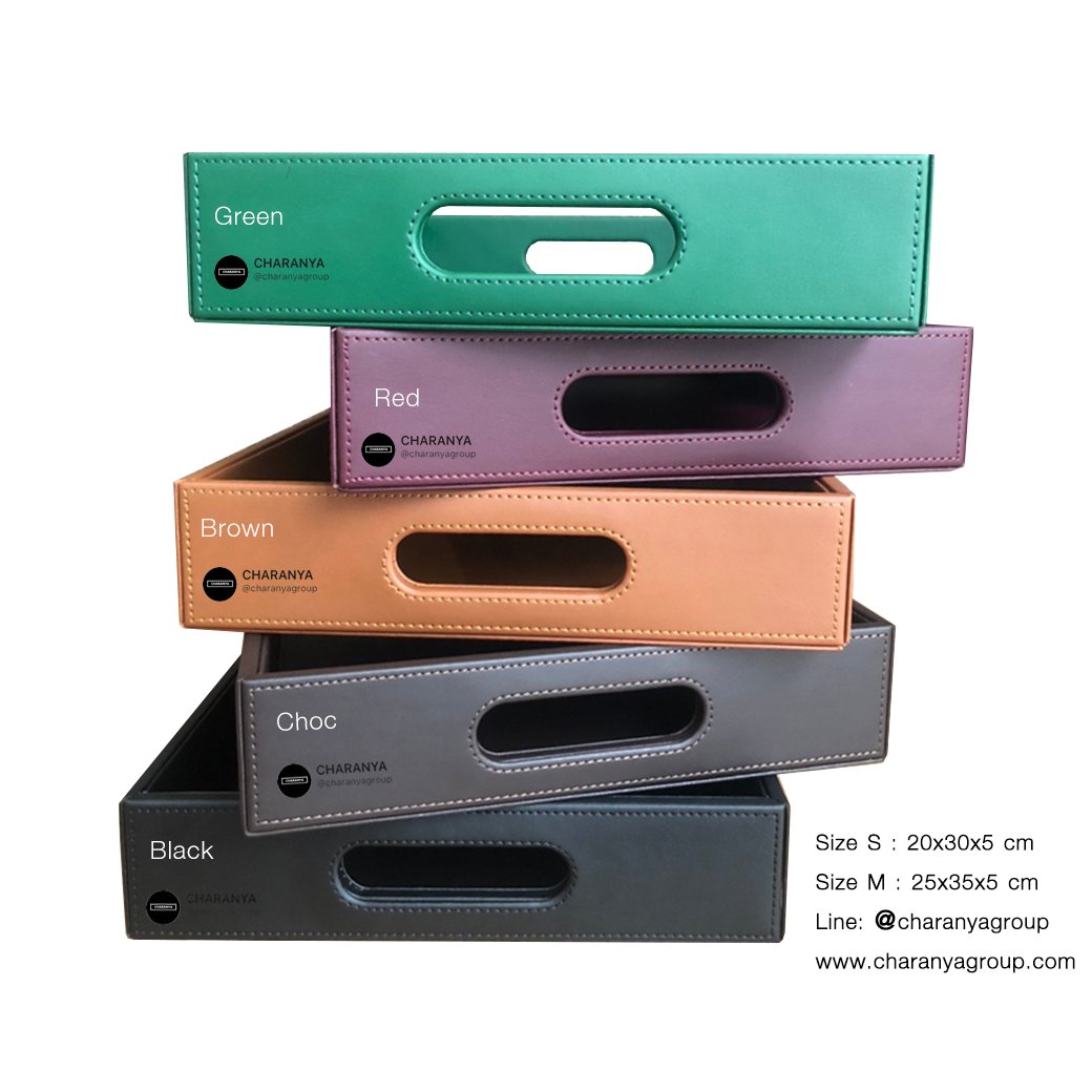ยกตัวอย่างถาดหนังที่ได้รับความนิยมจากร้าน Charanya รุ่น CHRT1-M เป็นถาดวางนาฬิกา เครื่องประดับ แว่นตาใช้ได้ทั้งบ้าน ออฟฟิศ รุ่น CHRT2_M มีหูจับ วางของต่าง ๆ หรือเสิร์ฟอาหารได้หมด รุ่น CHRB3_L เพิ่มมาหน่อยเป็นกล่องหนัง 3 ช่อง สามารถวางนาฬิกา เข็มขัด เนกไท ใส่นามบัตร หรือใส่ขนม ลูกอม บนโต๊ะรับแขก