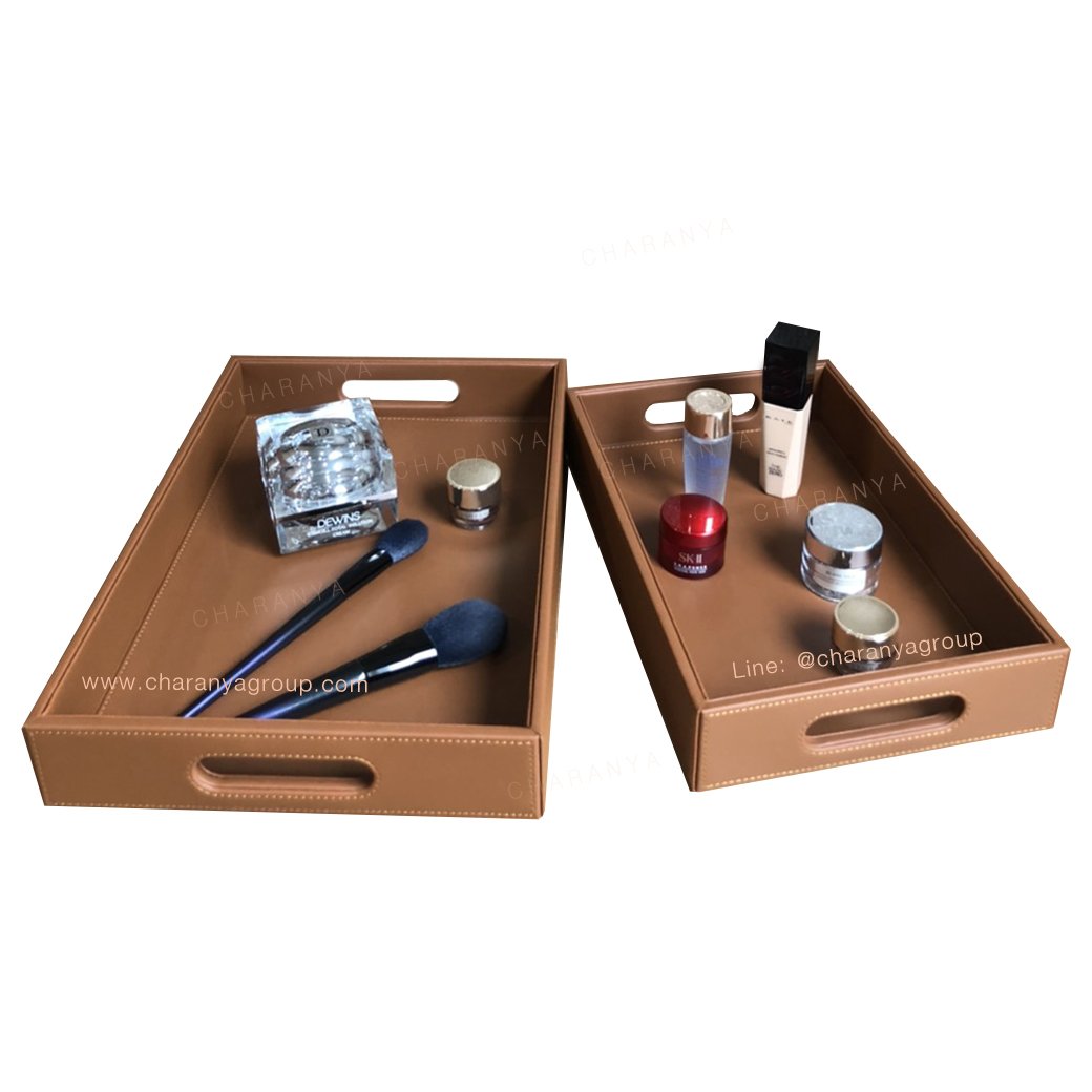 ซึ่งวัสดุหนังเราสามารถเลือกแบบมีลายนูนนิด ๆ หรือเรียบไปเลยได้หมด ใครของเยอะไม่ต้องกลัวเพราะมีให้เลือกซื้อกันหลากหลายอยู่แล้ว บางร้านออกแบบมาให้มีหูจับ สามารถเดินถือไปไหนมาไหนได้เหมาะมือ หรือเป็นช่องต่อกัน 2 ช่องบ้าง 3 ช่องบ้าง หรือเป็นถาดปกติให้รองสิ่งของต่าง ๆ ยิ่งเป็นสีสบายตา เน้นความเรียบหรูอย่าง สีน้ำตาลอ่อน สีม่วง สีน้ำตาลเข้ม สีดำ สีเทา ฯลฯ ก็เลิศสุด ๆ